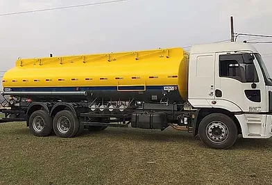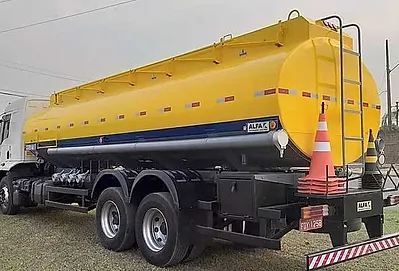 Tampa de carga e inspeção em alumínio com fechamento hermético e válvula de vácuo pressão conforme Inmetro, Calha de proteção contra tombamento, passadiço superior com sistema antiderrapante o que proporciona maior segurança, Guarda corpo tubular de 1100mm de altura, retrátil mecânico conforme NR-12, mesa de calibragem, escada traseira tipo marinheiro construída em tubo de aço carbono, extintores de incêndio de 8kgs de pó ABC, Mangote para descarregamento do produto com 2 1/2" de diâmetro e 5 metros de comprimento, para-lamas plástico com para-barros de borracha. Instalação elétrica completa com lanternas em LED. Adesivos refletivos de acordo com norma Contran vigente, Para-choque conforme Resolução 593/16 e alongamento traseiro do chassi se necessário, protetor lateral resolução 323/09, suporte de cones, para 10 cones amarelo/preto e 4 cones refletivos laranja/branco, 01 caixa de ferramenta, suporte de balde de alumínio e suporte de pá e enxada. Suporte de placas de simbologia (ONU). Sistema de fixação do tanque com grampos de aço de 16mm de diâmetro fixando a longarina do tanque ao chassi do caminhão, com isolamento amortecedor de madeira de lei.