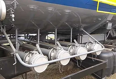 Sistema TOP, com válvulas de fundo pneumática e descarga do produto dos dois lados com portinholas ou Sistema BOTTOM LOADING, com válvulas de fundo pneumática e descarga do produto dos dois lados, sendo lado acompanhante com válvulas API e adaptador 6" x 4" e lado motorista com portinholas, acionadores lado acompanhante e grade de proteção nas válvulas API, tampas pneumática sem trava pneumática e recuperador de vapor embutido no tanque.